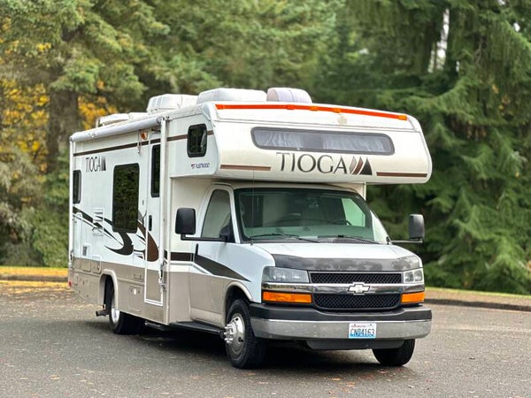 Up for sale is a 2005 23 foot Fleetwood Tioga class C motorhome. with low mileage, All appliances work great has a rear kitchen fully equipped with three burner stove top oven microwave double sinks. And a two way refrigerator has a large corner bathroom with shower/tub can sleep up to 4 to 5 people air-conditioning and furnace work great has no leaks. No water damage never smoked in. Has the Chevy Express Chassis and equipped with a 6.0L Vortec automatic with only 31k miles! Dinette table drops into a bed and so does the sofa tires have plenty of tread and look good super easy to drive and can get into just about any RV campground has a tow package 4000 W generator that fires right up just a great RV for the price to schedule an appointment feel free to send me a message